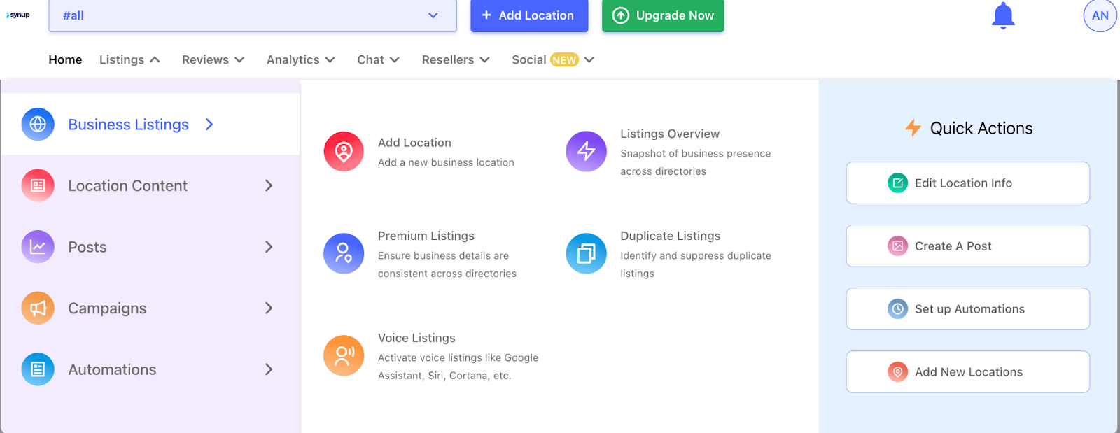 Con el conjunto integral de funciones de Synup, tiene todas las herramientas necesarias para garantizar que sus listados de empresas estén totalmente optimizados, gestionados activamente y altamente visibles para su público local objetivo en los modos de búsqueda tradicionales y emergentes.