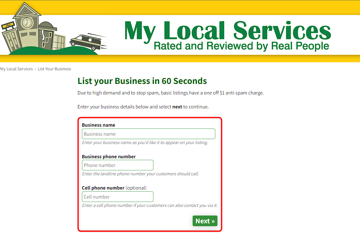 Paso 1: Vaya al sitio web de MyLocalServices en www.mylocalservices.com.