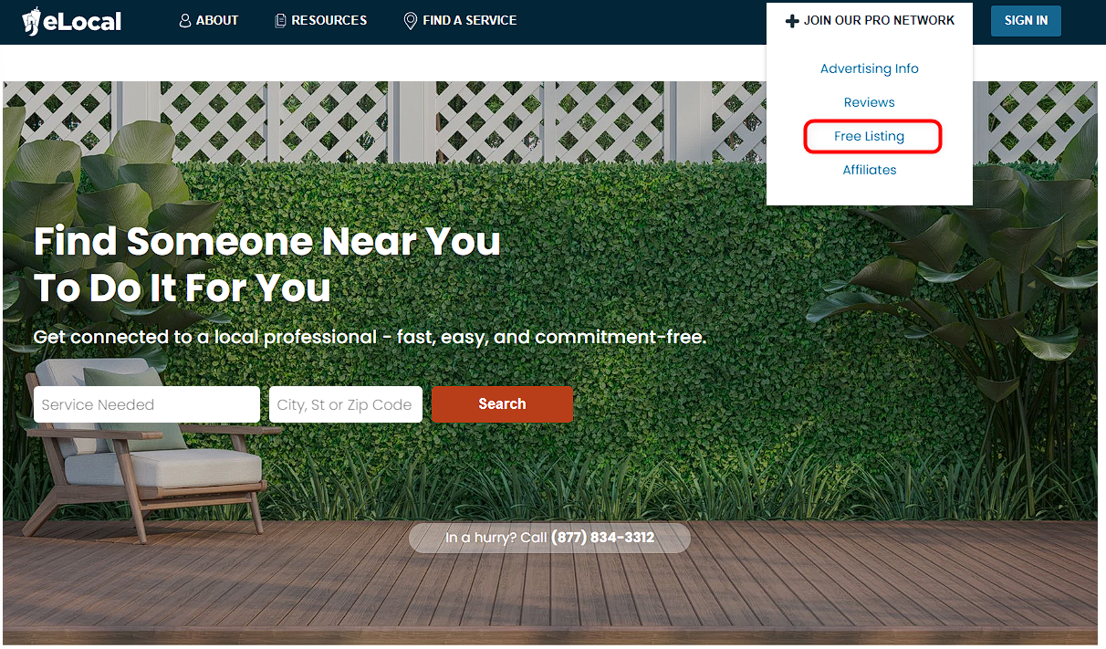 Paso 2: Una vez allí, haz clic en la lista «Únete a nuestra red profesional» y selecciona «Listado gratuito» en la esquina superior derecha de la página de inicio.