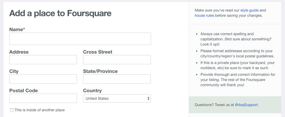 Para incluir tu empresa en Foursquare, sigue los pasos que se indican a continuación.