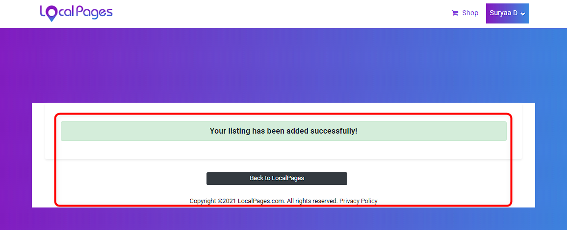 ¡Felicidades! Has añadido correctamente tu empresa a LocalPages.com y ahora puedes disfrutar de una mayor visibilidad y exposición ante clientes potenciales.