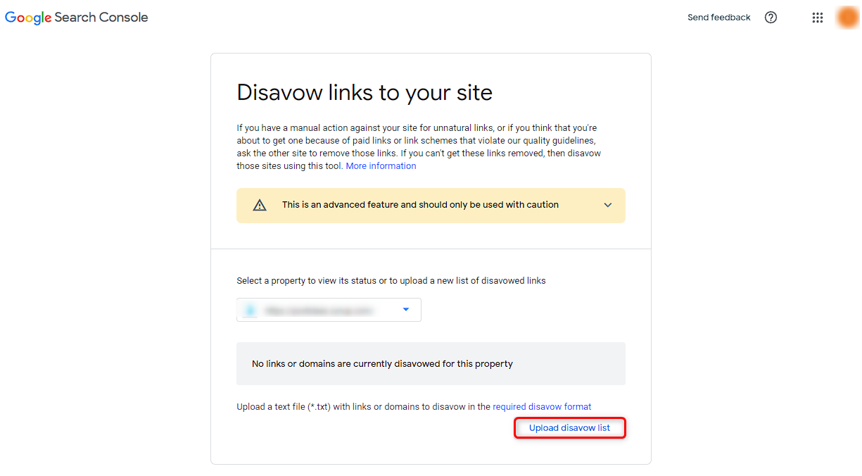 Consejos profesionales: No desautorices dominios enteros, sino que desautorices URL específicas si es necesario. Evita usar la herramienta de desautorización si no tienes una penalización manual en tu cuenta.