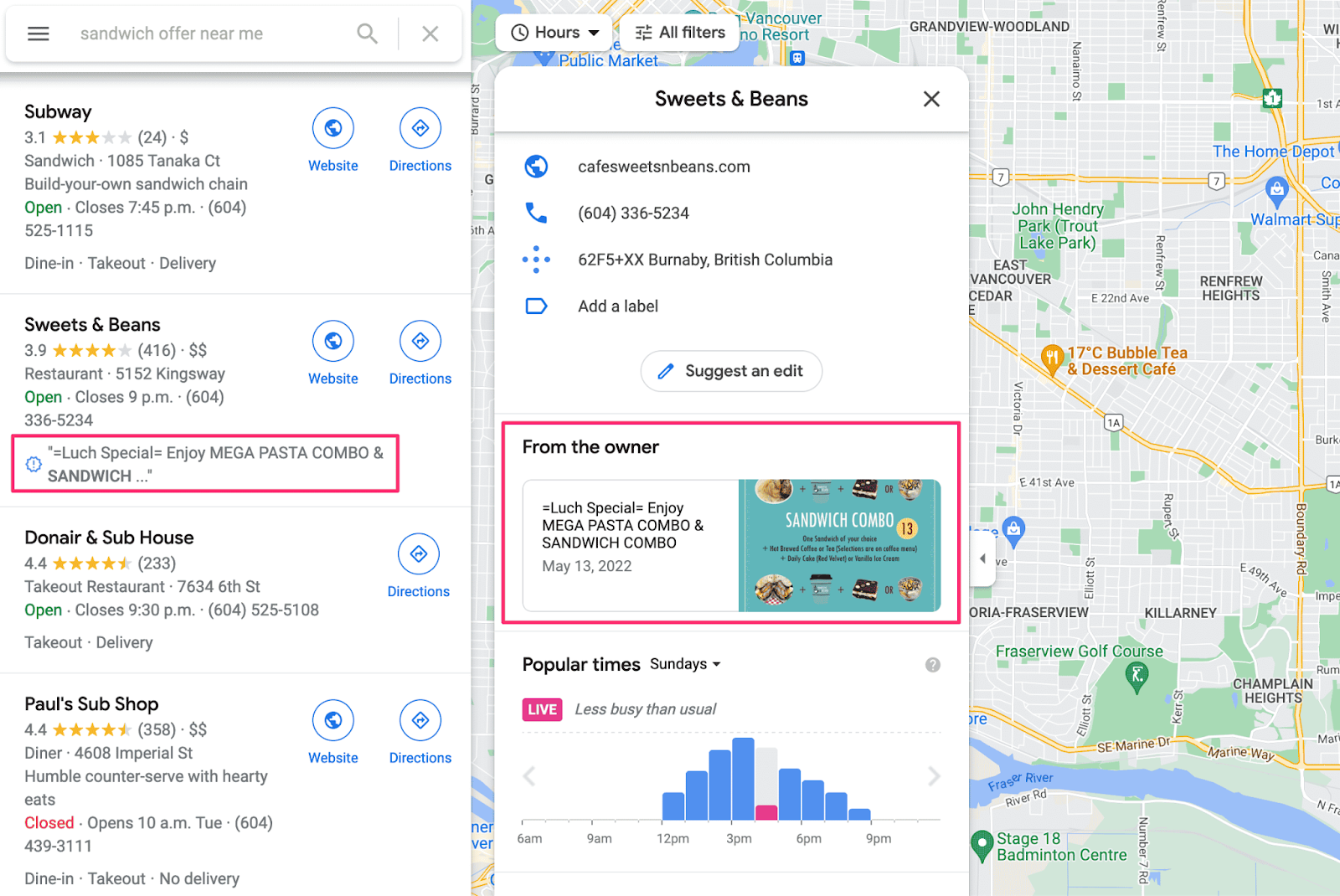 - Promocione ofertas y eventos especiales: Publicar en tu perfil empresarial de Google es una forma estupenda de promocionar las ofertas especiales, los descuentos y los eventos que organiza tu empresa.