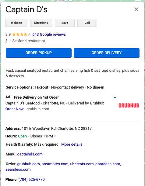 Si tu empresa no aprovecha los anuncios locales de Google en tu anuncio, la competencia o los servicios de terceros, como Grubhub, Instacart, Caviars, Uber East y más, sí lo harán.