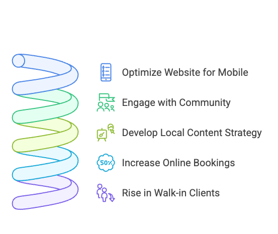 En primer lugar, optimizaron su sitio web para los usuarios de dispositivos móviles, reconociendo que la mayoría de las búsquedas locales se realizan en teléfonos inteligentes. Al mejorar la velocidad de carga de la página, garantizar un diseño limpio y optimizado para dispositivos móviles y agregar botones claros de llamada a la acción, facilitaron a los clientes potenciales la reserva de citas desde cualquier lugar.