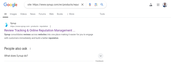 Si Google no indexa una página, el backlink no importará. Usa Google para comprobarlo buscando: