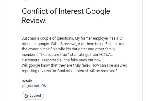 He aquí otro ejemplo clásico: «Antes trabajaba aquí y la administración es increíble. Siempre se preocupan por sus empleados». El problema aquí es que infringe la política de reseñas de Google.