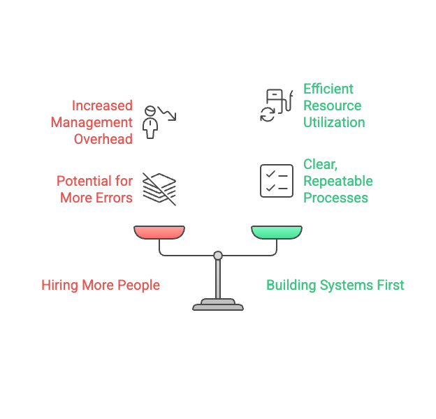 Contratar a más personas puede parecer un crecimiento, pero sin sistemas sólidos, solo se agrega más caos.
