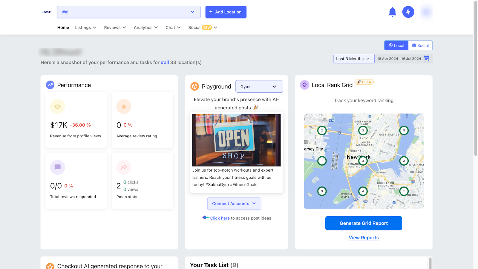 Con sus potentes funciones de administración de listados, Synup facilita la optimización y la administración de la información de su empresa en varias plataformas. Puedes solicitar y verificar tus anuncios con facilidad, asegurarte de que los datos de tu NAP son correctos y mejorar tu visibilidad con palabras clave específicas. Además, Synup te permite supervisar las reseñas e interactuar directamente con tus clientes, lo que te ayuda a generar confianza y fomentar la lealtad.