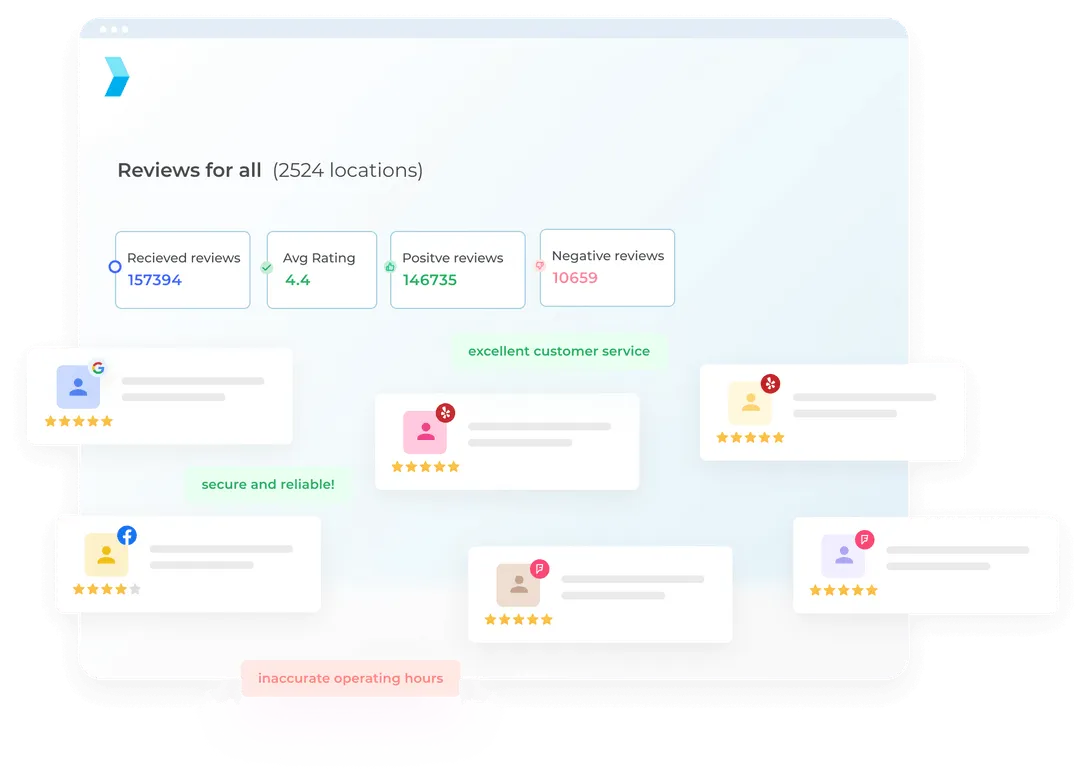 Obtenga una visión completa de la reputación de su marca, las opiniones de los clientes y las opiniones de los clientes, todo en un panel de control.