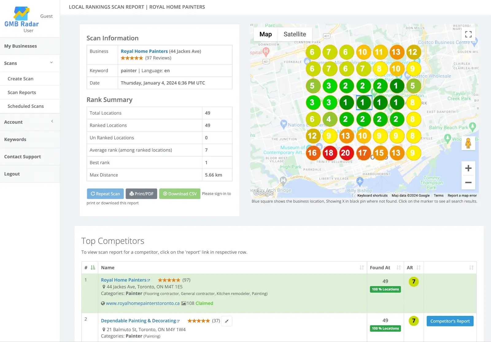 - Grid maps reveal exactly where a client’s rankings drop off, so you can refine on‑page and off‑page SEO.