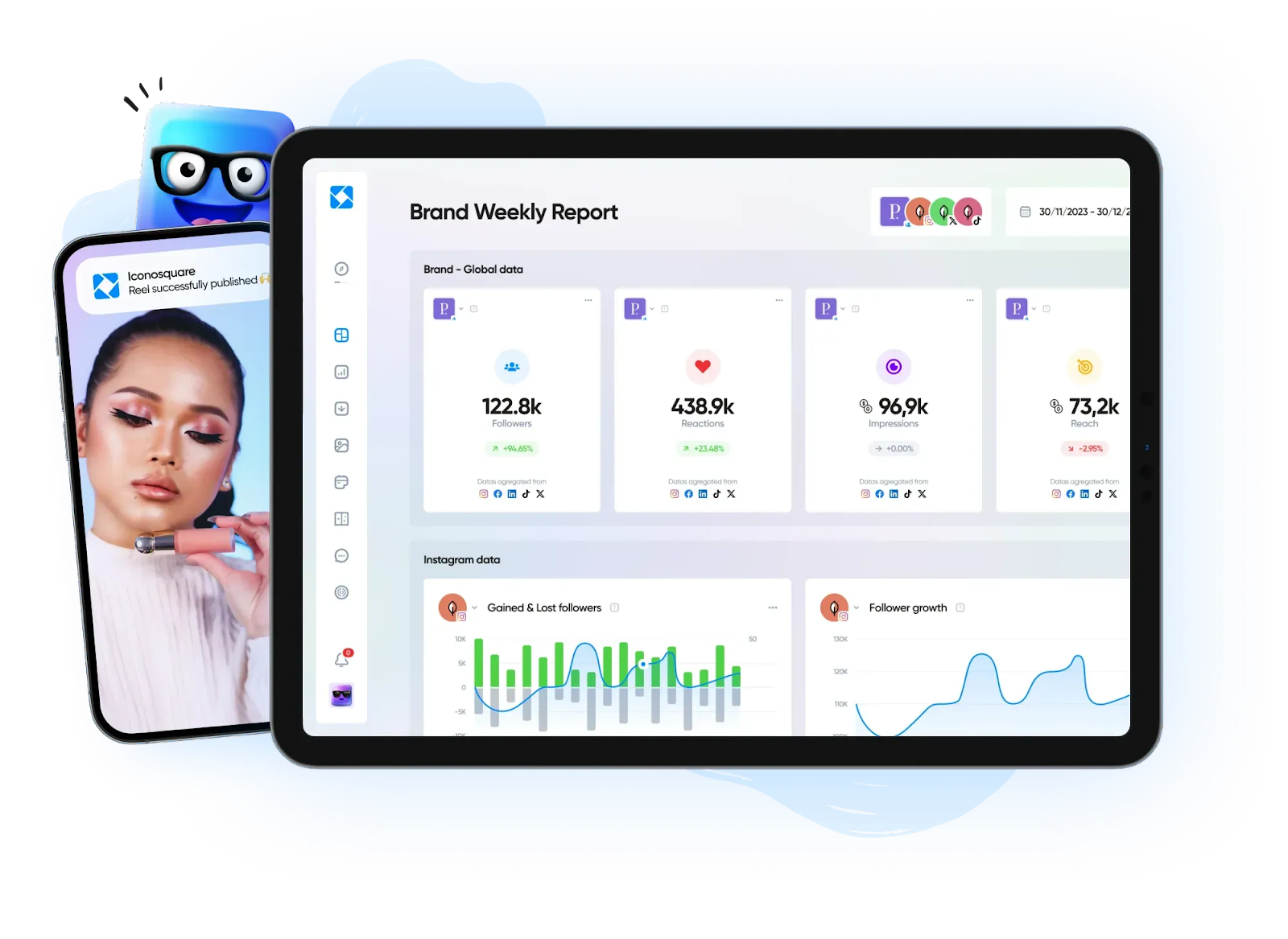 ⭐️ Livré avec suggestions de GIF pour créer des publications pleines d'émotions avec observations des tendances sur un mois pour soutenir des causes sociales et plus encore.