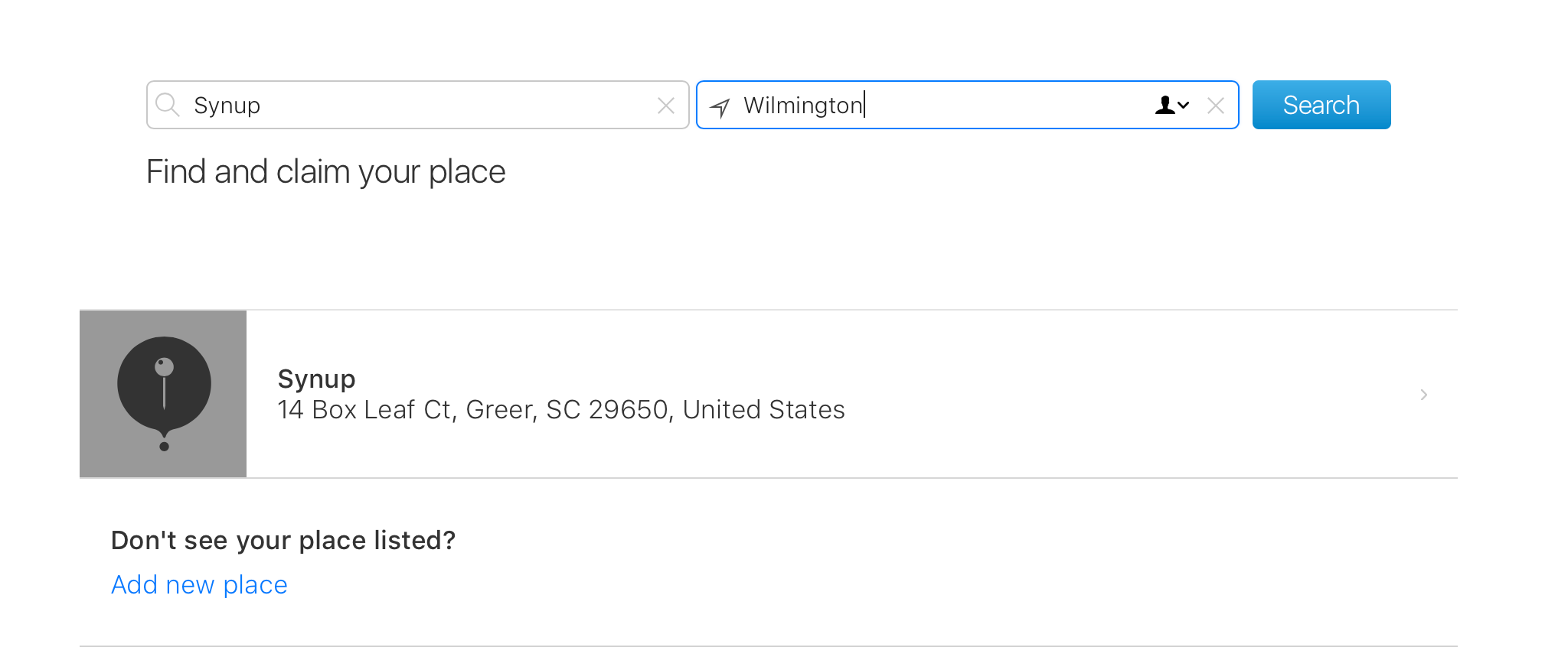 cliquez sur les informations relatives à votre entreprise dans les résultats de recherche ci-dessous et cliquez sur l'option « Réclamer cette place » dans la fiche de l'entreprise