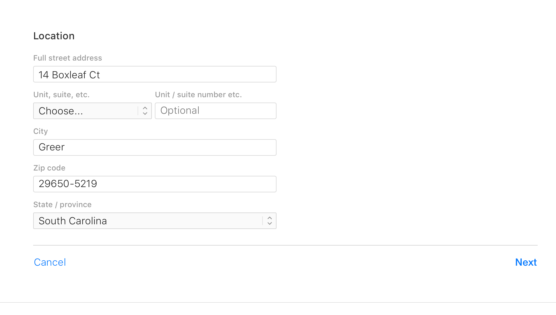 Ceci est facultatif, mais si vous travaillez dans une unité ou une suite, il est recommandé de saisir ces informations.