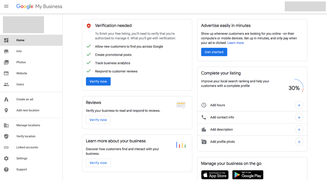Google peut vous guider dans un processus de vérification rapide par téléphone. Une fois que vous aurez terminé, une fenêtre comme celle-ci s'affichera, dans laquelle vous devrez taper le nom de votre entreprise.