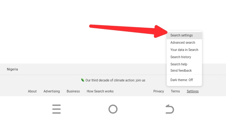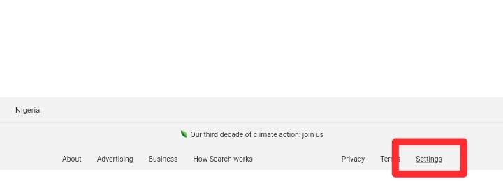 - Accédez à Google.com et cliquez Réglages dans le coin inférieur droit.