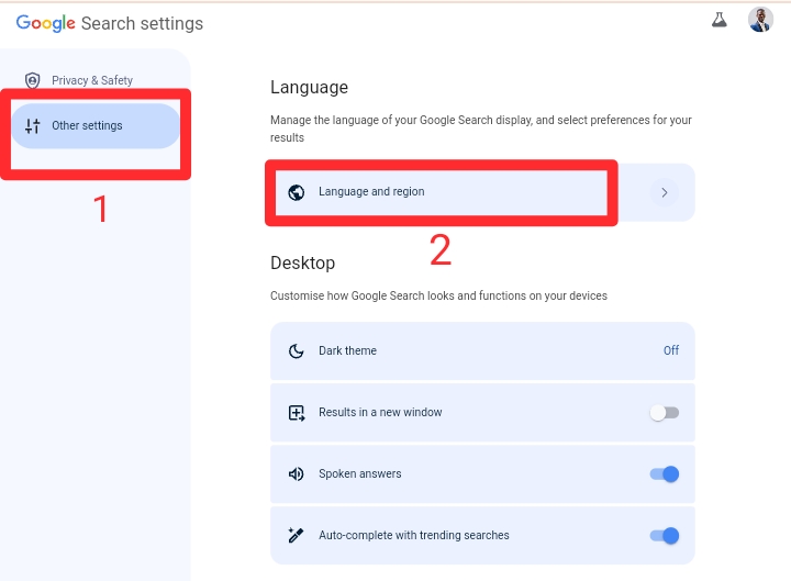 - Passez à Autres paramètres, cliquez sur Langue et Région et choisissez votre zone cible.