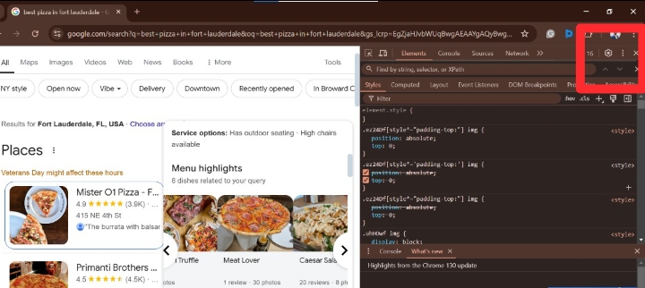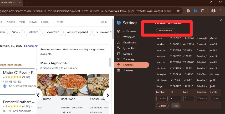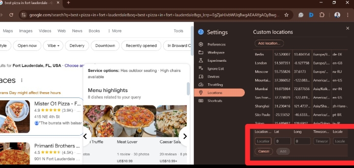 Voici une astuce intéressante pour obtenir des résultats de recherche locaux précis : utilisez les outils de développement de Google pour définir un emplacement personnalisé. Il est idéal pour les entreprises qui souhaitent apparaître dans les résultats comme si elles se trouvaient dans un quartier cible.