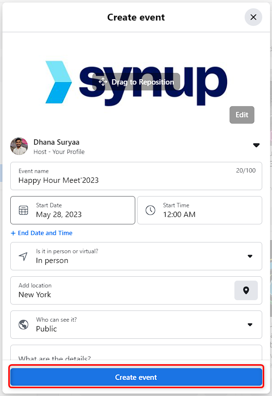 - Photo ou vidéo de l'événement : Choisissez quelque chose qui a l'air bien. C'est la première chose que les gens verront, alors faites en sorte que cela compte.