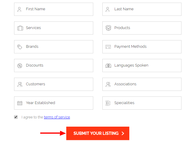 Ensuite, remplissez le formulaire et choisissez les catégories appropriées pour votre entreprise. Ajoutez d'autres détails tels que prénom et nom de famille, nom de l'entreprise, adresse e-mail, coordonnées, adresse, etc. Acceptez ensuite les conditions d'utilisation et cliquez sur « Soumettre votre annonce ».