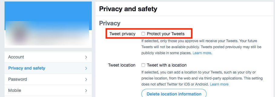 Pour obtenir un compte Twitter vérifié, vos tweets doivent être paramétrés sur « Public ». Vous pouvez le faire en désactivant l'option « Protégez vos tweets » dans le menu « Confidentialité et sécurité ».