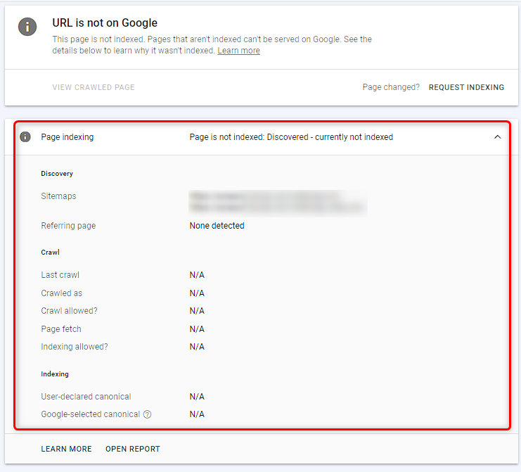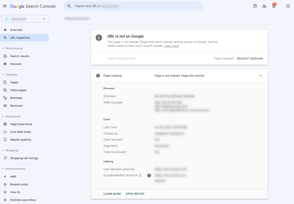 - État de l'indexation : Vous pouvez vérifier si une page/URL est indexée ou non et quand elle a été indexée pour la dernière fois par Google.