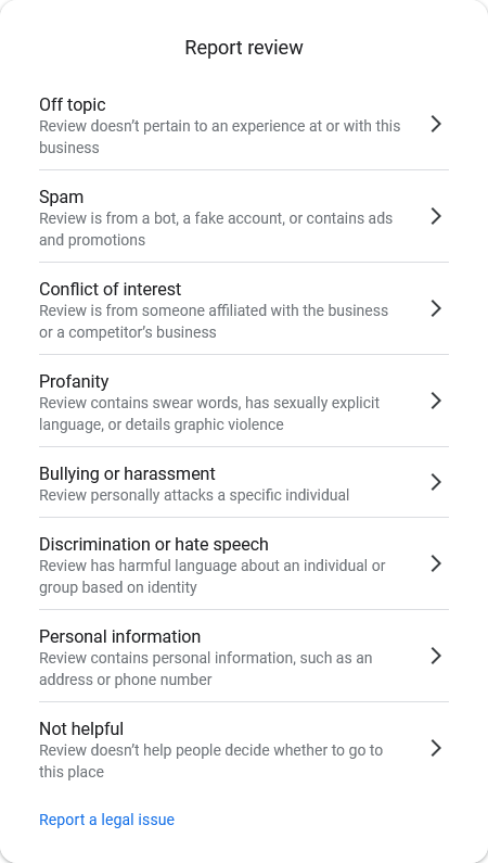 3. Indiquez à Google pourquoi l'avis doit être supprimé