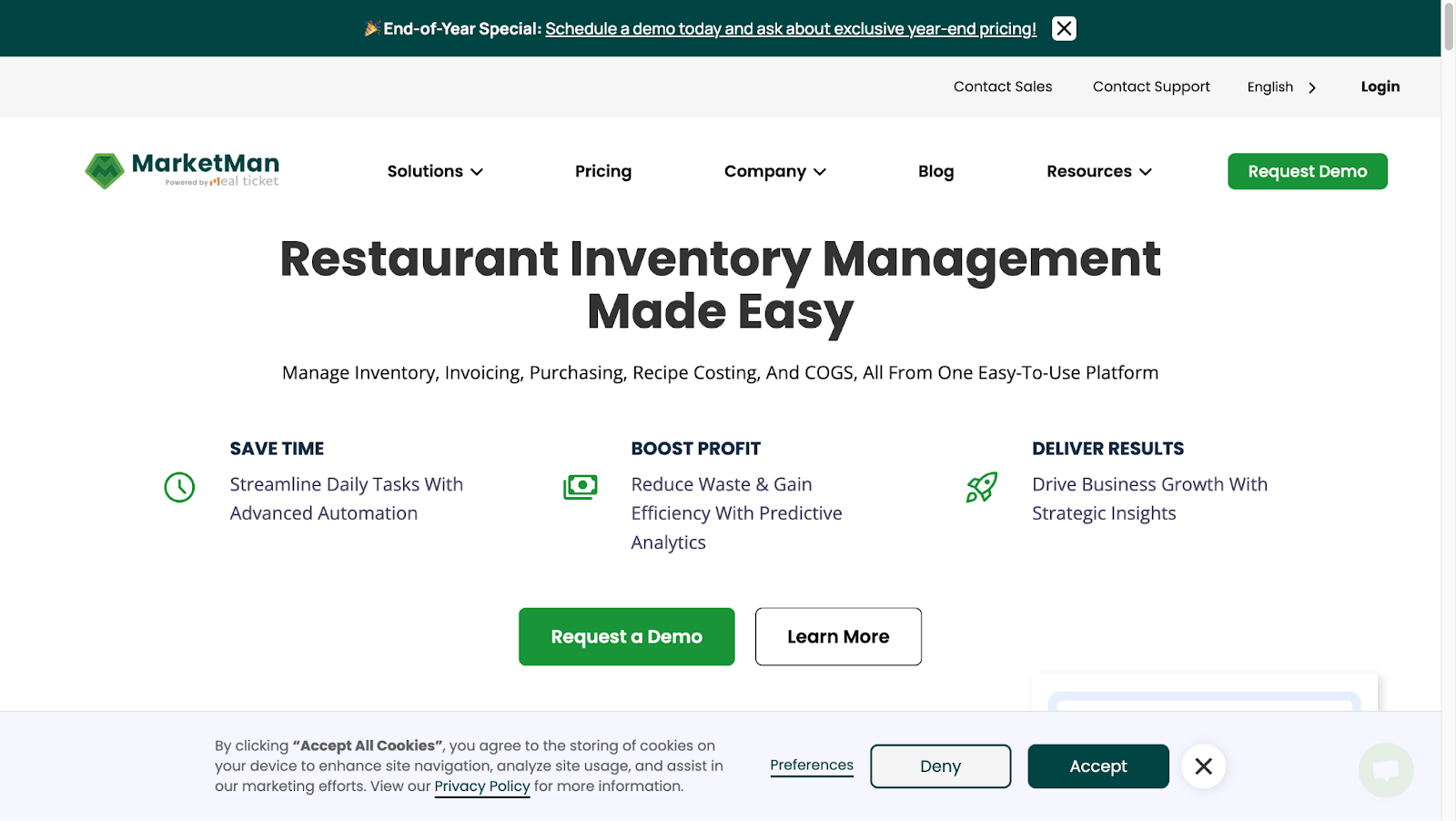 MarketMan est un système de gestion des stocks et des fournisseurs adapté aux secteurs de la restauration et de la restauration. Il aide les entreprises de restauration à suivre les stocks, à gérer les achats et à maintenir un contrôle précis des coûts, vous garantissant ainsi d'être toujours prêt pour tout événement.