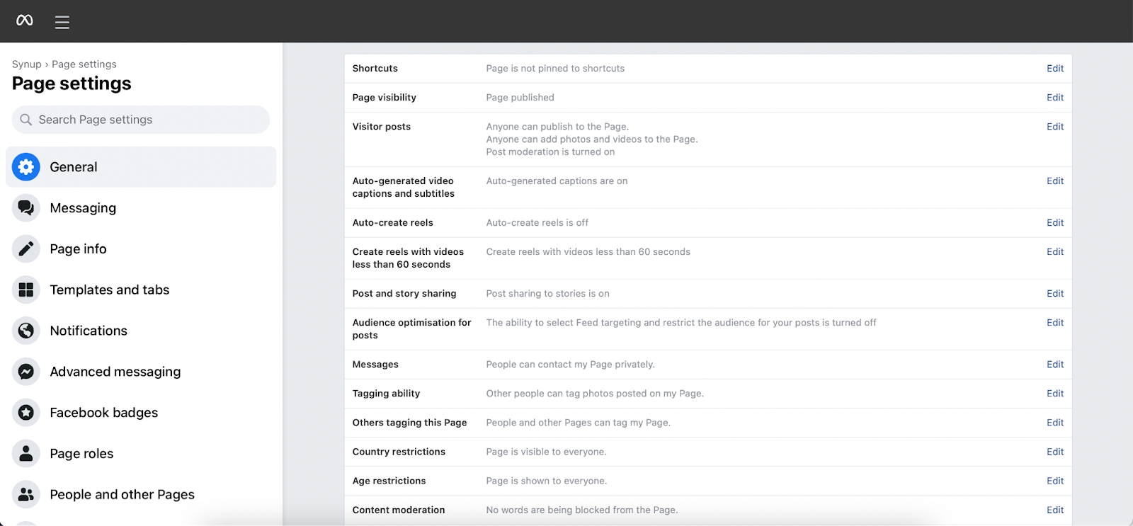 Il y a beaucoup de choses à faire dans les paramètres de page. Vous pouvez consulter vos paramètres en un coup d'œil et modifier et supprimer différents rôles de page. Vous pouvez également voir vos abonnés, consulter vos messages, etc.