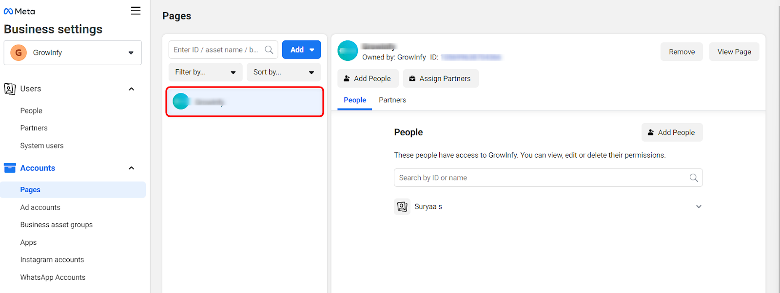 Étape 5 : Sélectionnez votre « page professionnelle » à côté de l'application Meta Business Suite.