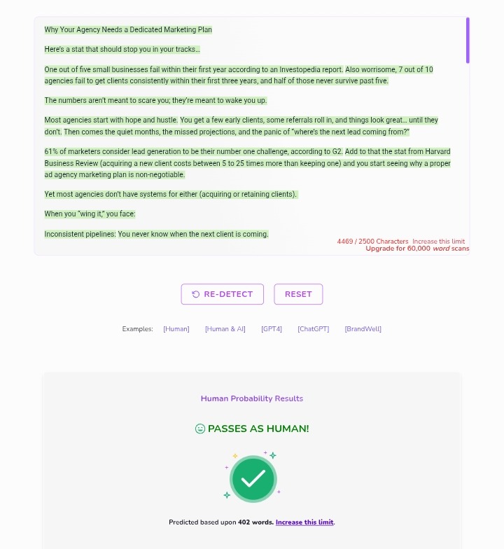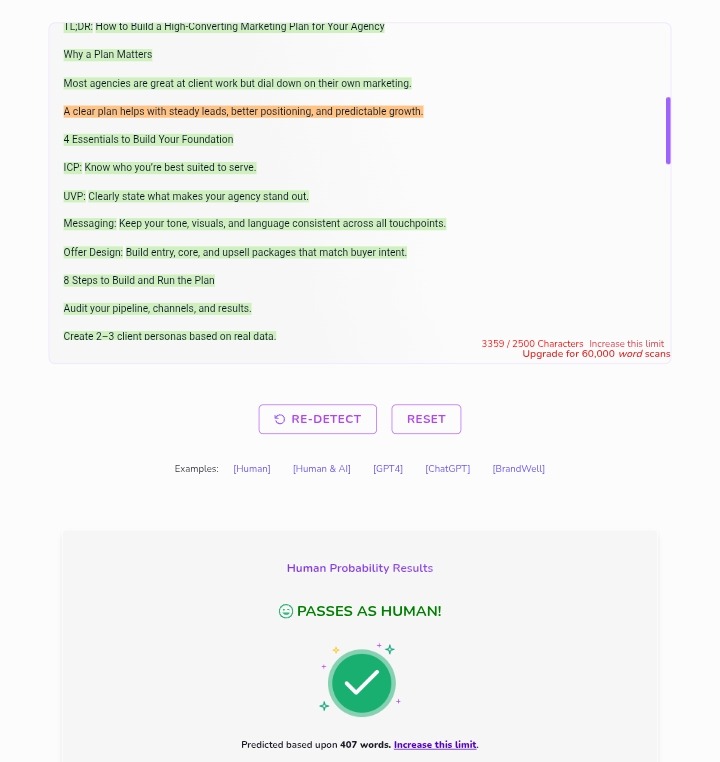 Every few months, or anytime something big shifts, like a new service, a team change, or a dip in results. A marketing plan isn’t something you write once and shelve. It should grow and change with your agency, just as everything else does.