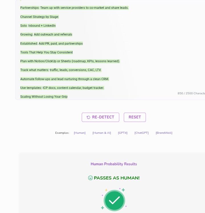If your homepage says you’re a “growth partner,” your outreach emails shouldn’t sound like a used-car pitch. Build consistency in tone, visuals, and language. Positioning helps clients decide whether to even reply to you.