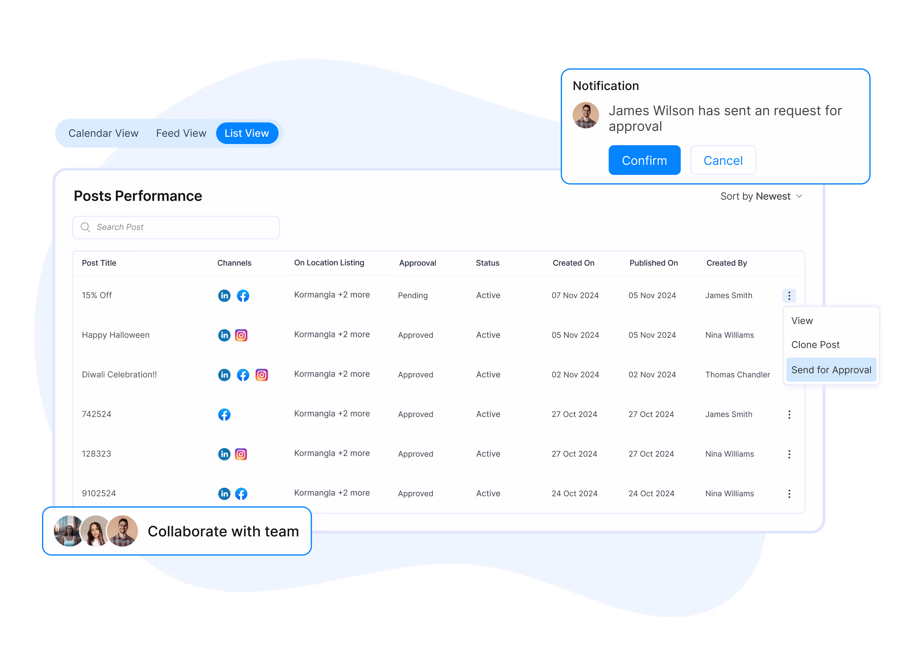 Share a dynamic LinkedIn content calendar with stakeholders and run approval workflows for seamless content management across your team.