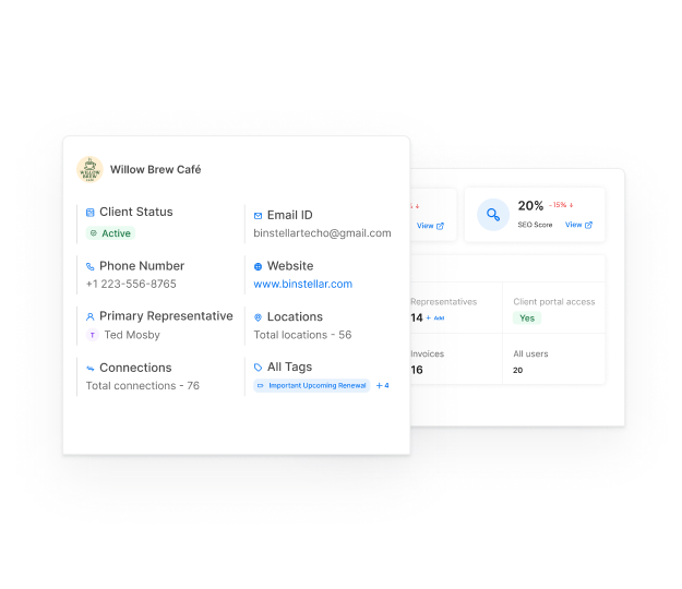 Arrêtez de jongler avec les outils, de fouiller dans les e-mails ou de passer à côté de signaux d'alarme. Synup OS transforme les informations éparpillées sur les clients en un actif stratégique, un actif sur lequel vous pouvez agir, évoluer et augmenter vos revenus.