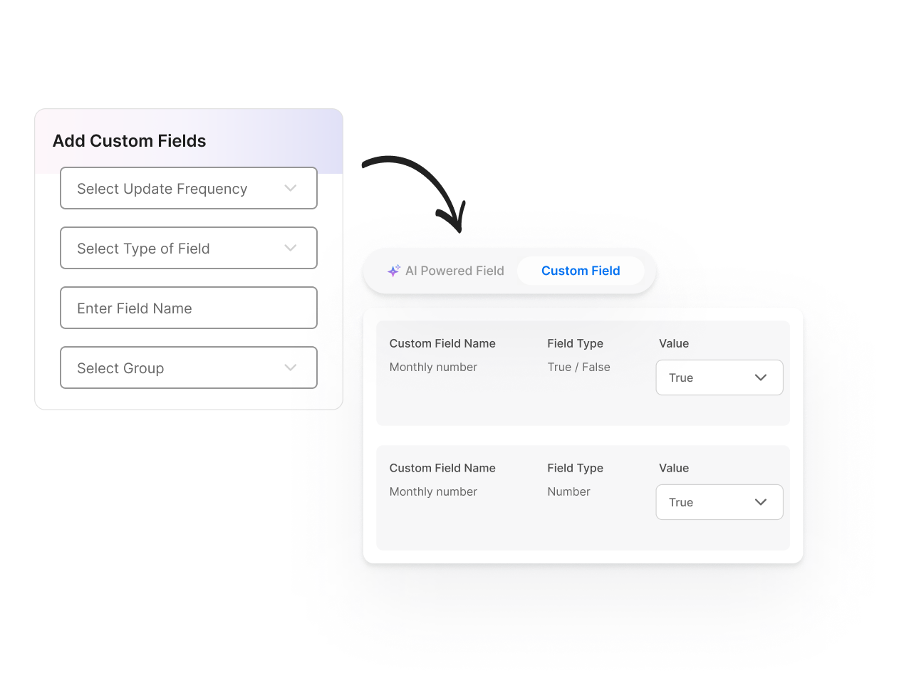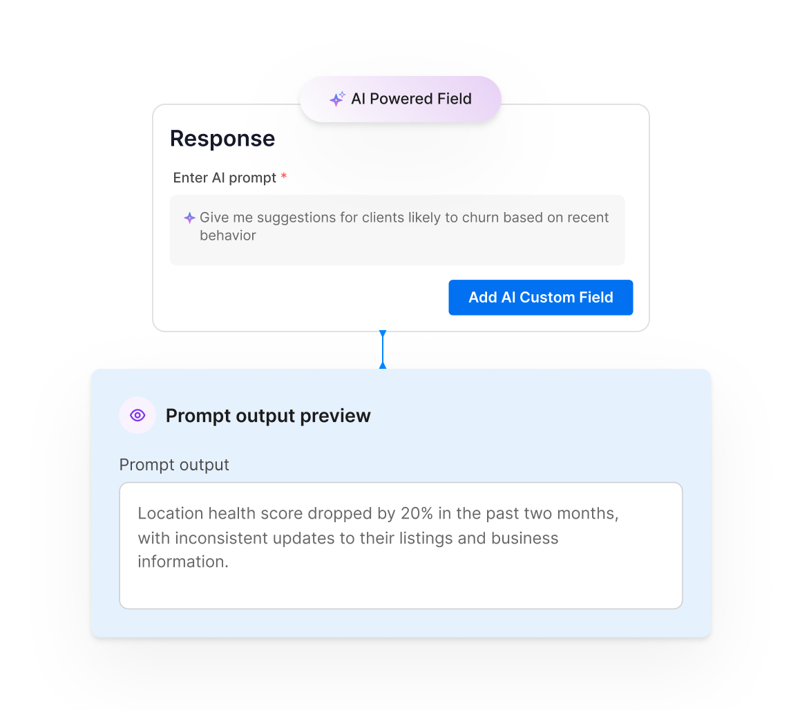 Pourquoi s'arrêter aux données que vous connaissez déjà ? Synup OS vous aide à remplir les espaces vides grâce à un enrichissement basé sur l'IA intégré directement dans les champs personnalisés.