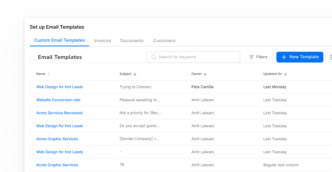 Créez des modèles pratiques pour les points de contact importants avec les clients, tels que l'intégration, la mise à jour des tâches, les paiements, etc. Cela permet également de maintenir une communication cohérente et professionnelle.