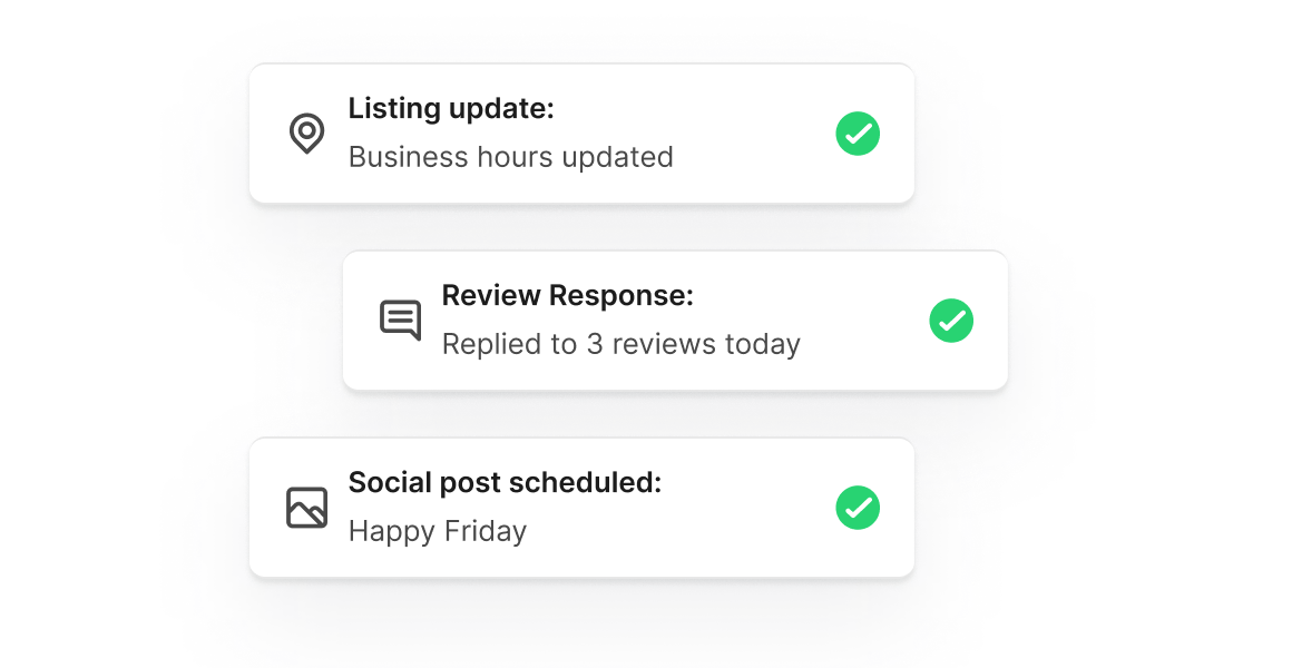 Les PME disposent d'outils qui les aident réellement à se développer, tels que des réponses aux avis rédigées par l'IA, des publications sur les réseaux sociaux planifiées automatiquement et des listes locales synchronisées. Vous obtenez en retour des revenus prévisibles.