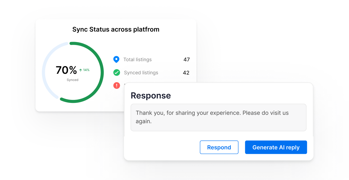Les outils de Synup fonctionnent de manière native dans votre environnement ou sous la forme d'un portail autonome entièrement personnalisé. De l'IA de réponse aux avis à la synchronisation des annonces en passant par la publication de contenu, tout ressemble à ce que vous avez créé.