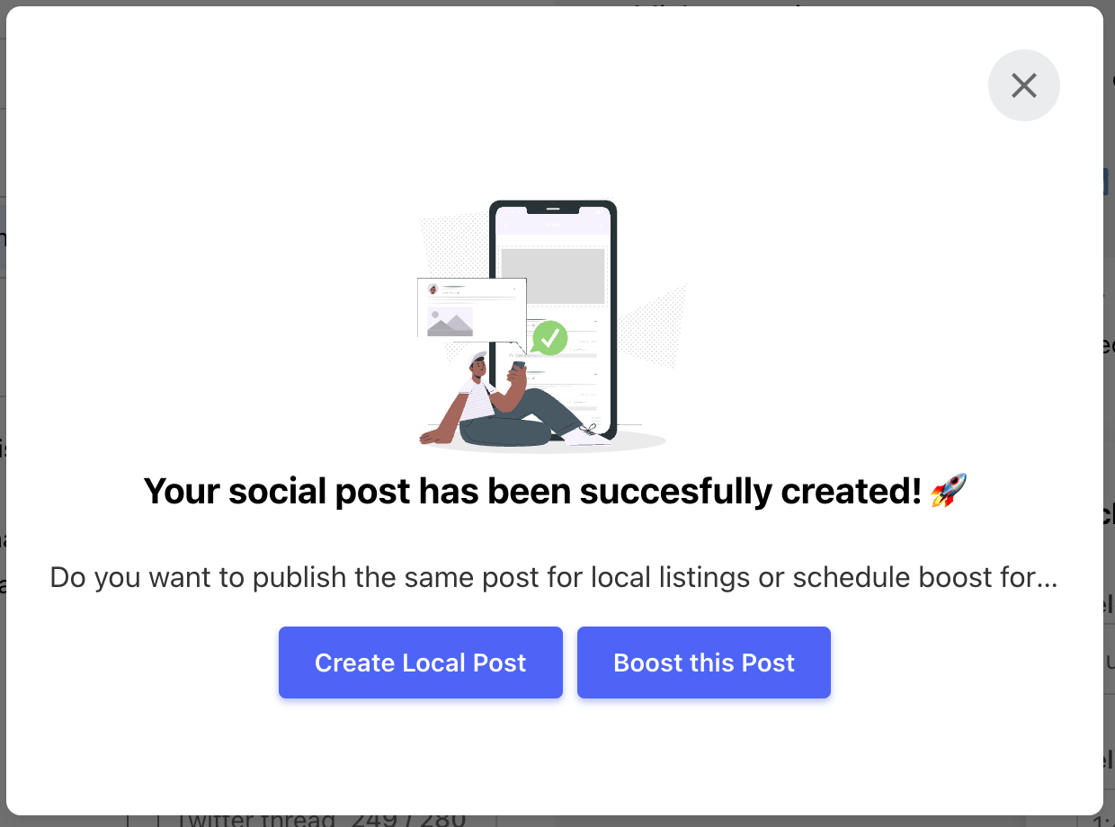 Après avoir utilisé le créateur de publications révolutionnaire de Synup Social pour créer la publication parfaite, il y a presque vous ne pouvez rien faire d'autre que de l'envoyer au monde. Que vous souhaitiez toucher un public plus large ou promouvoir quelque chose en particulier, dynamiser vos publications sur les réseaux sociaux est un excellent moyen de « stimuler » votre croissance et de garantir la performance de votre publication !
