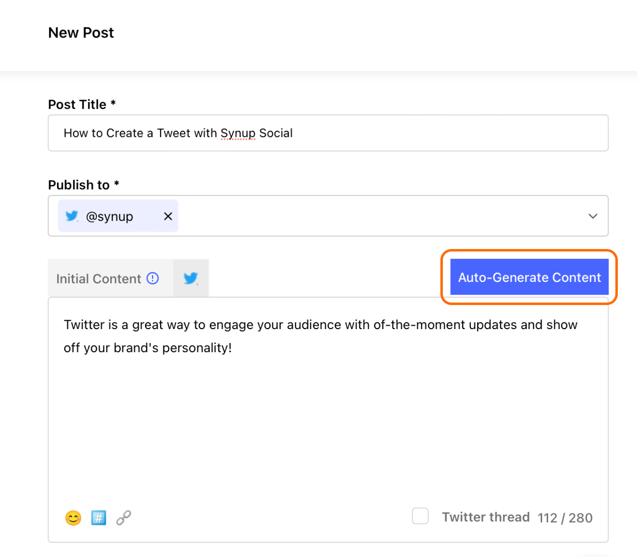 Avec Synchronisation sociale, il est plus facile que jamais de réfléchir à des sujets et de créer des fils Twitter attrayants. Pour créer un fil de discussion qui permettra à votre public de rester accroché jusqu'au dernier personnage :