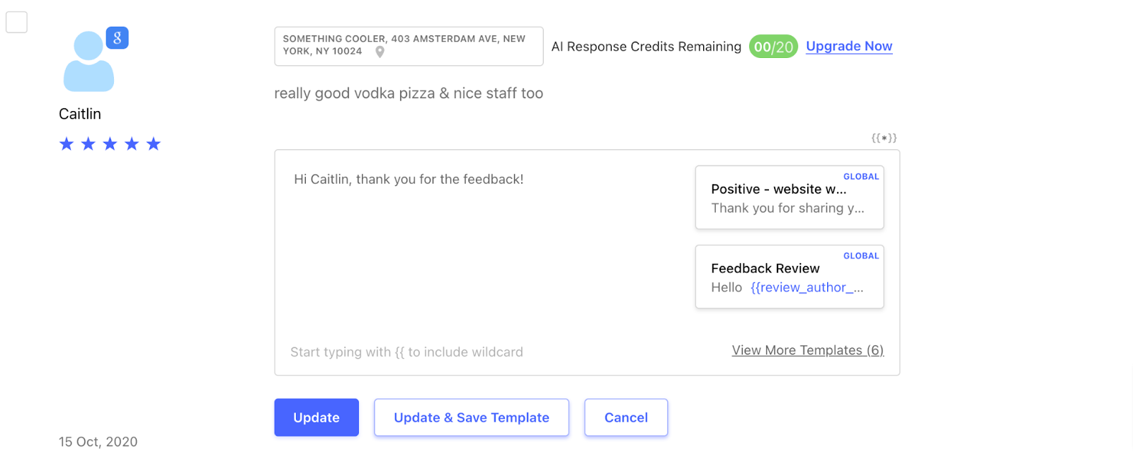 Une fois que vous avez fait défiler la page vers le bas, vous pouvez consulter les commentaires, laisser des commentaires et enregistrer vos réponses sous forme de modèles, comme le montre l'image ci-dessous.