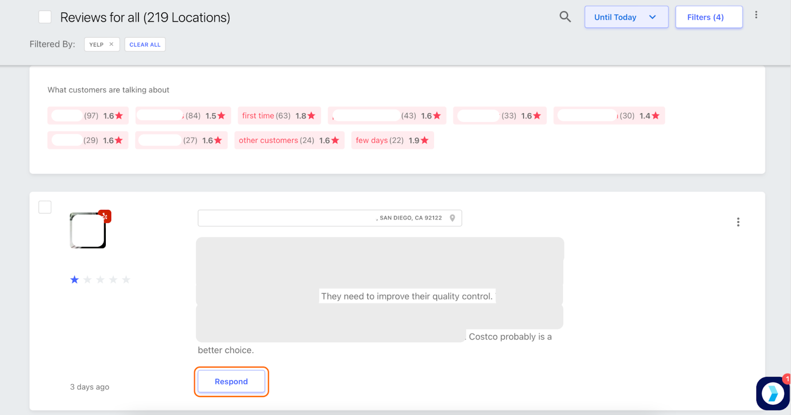 Cliquez sur « Répondre » pour répondre à cet avis directement depuis la plateforme Synup. Et ne vous inquiétez pas si vous recevez un avis négatif, considérez cela comme une opportunité de montrer à vos clients que vous les appréciez !