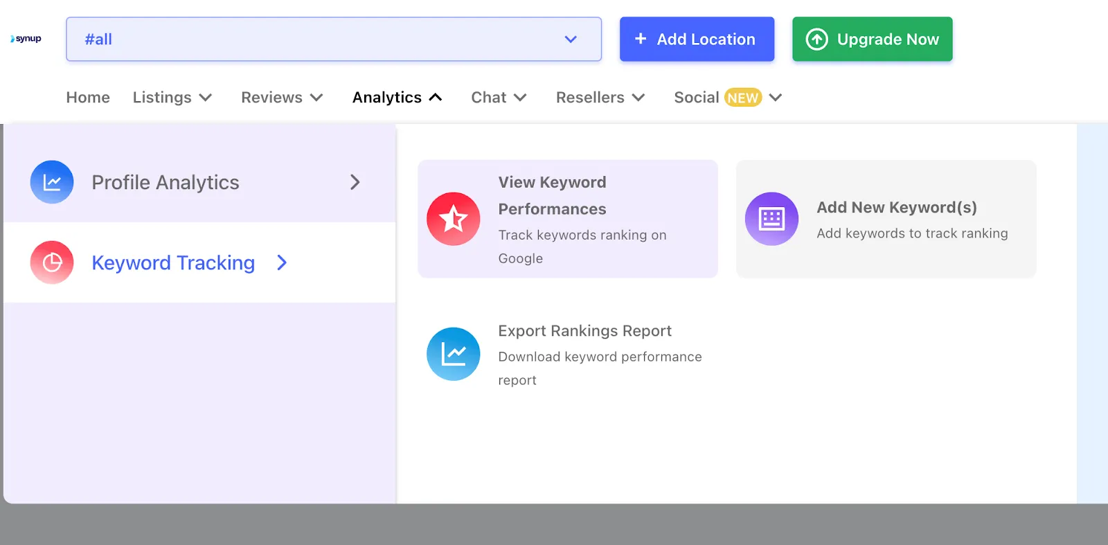 Apprenez à suivre le classement de votre site Web sur Google grâce aux puissants outils de Synup. Surveillez vos performances en matière de référencement et améliorez votre visibilité en ligne.