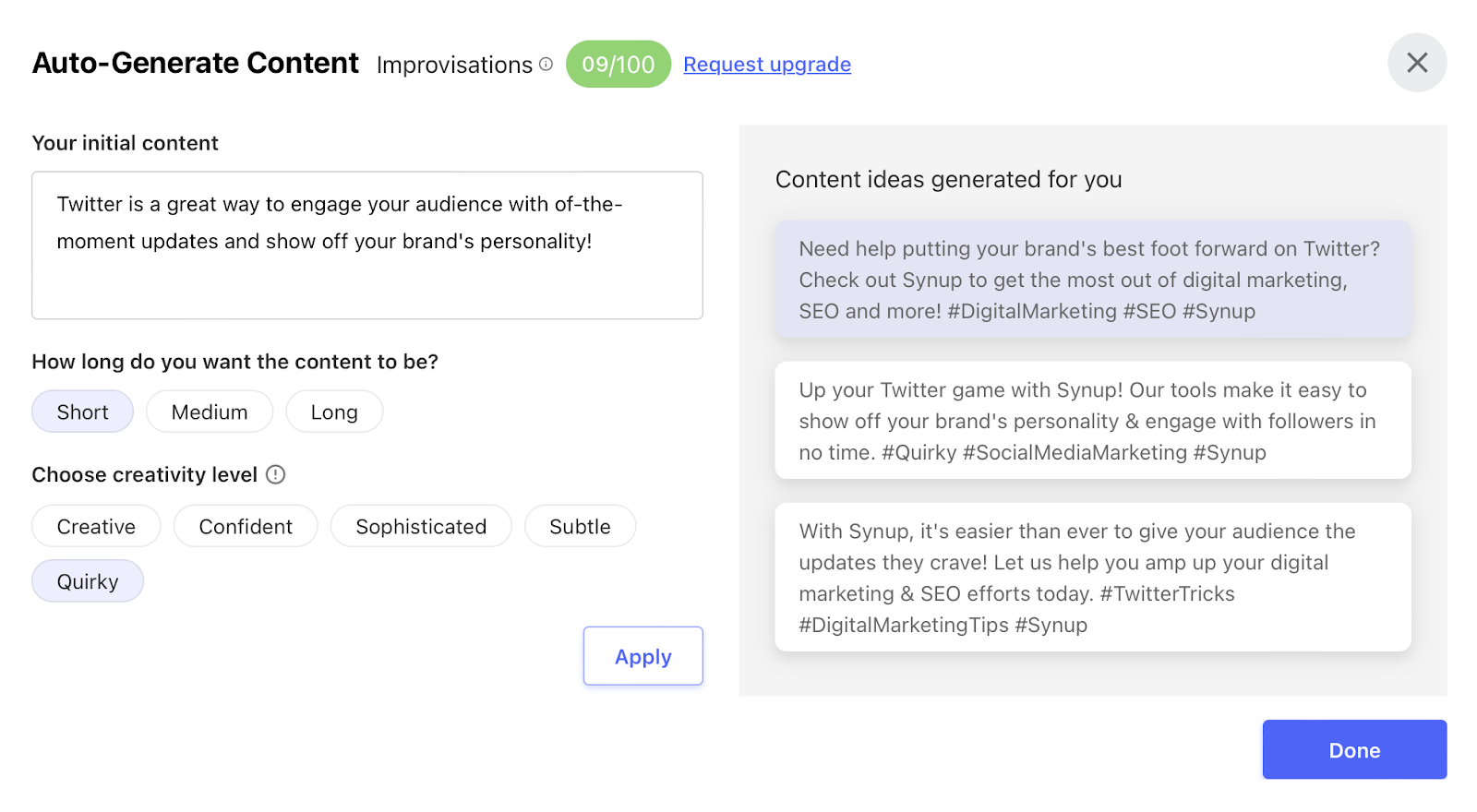 Utiliser l'IA pour rédiger des tweets avec Synup Social